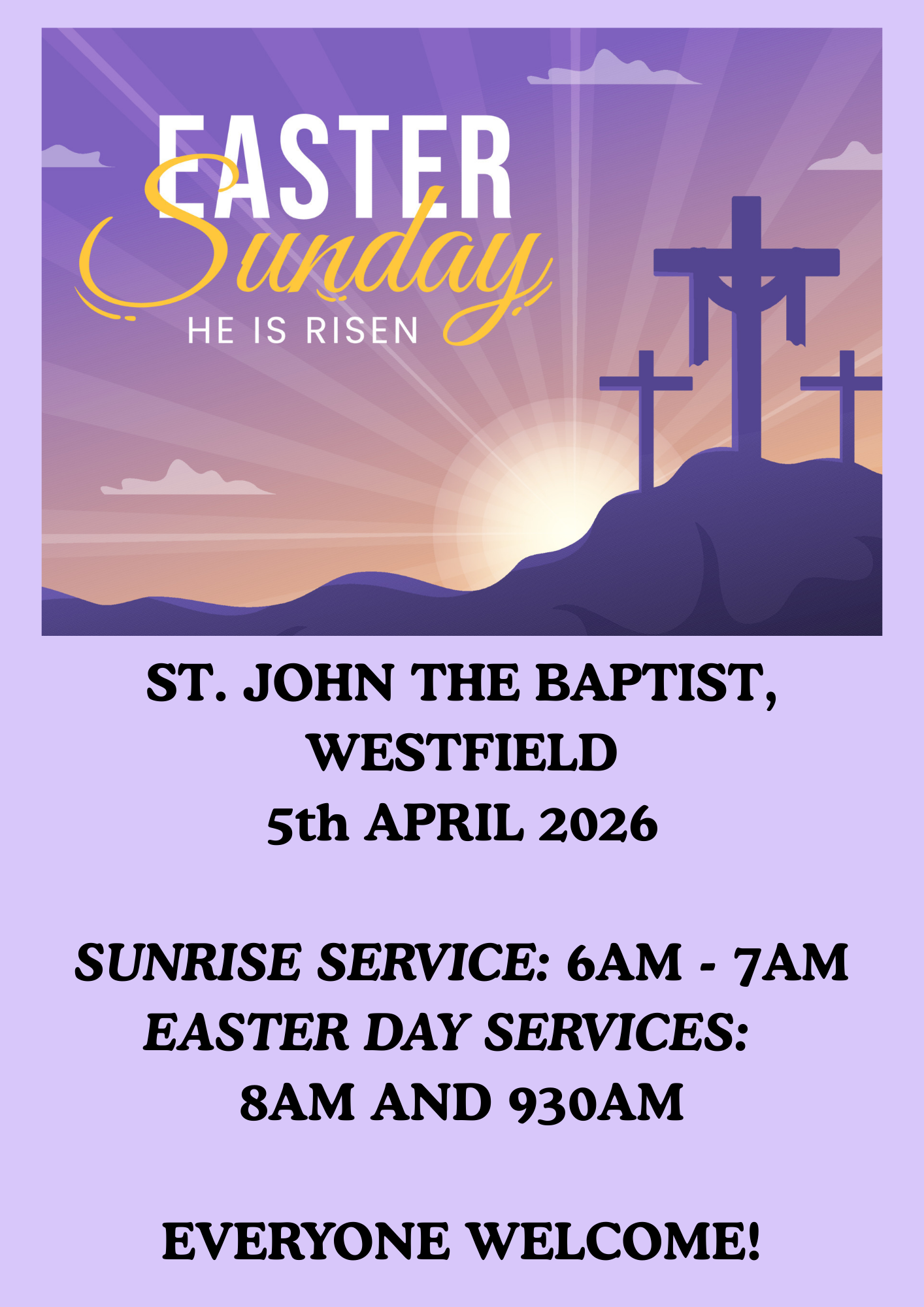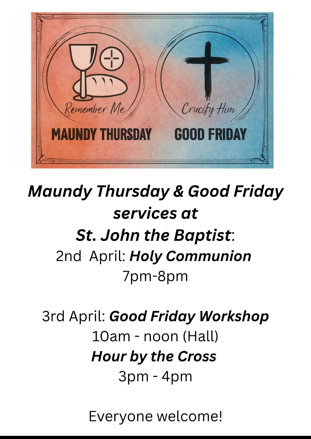 The schedule for our Lent and Easter services 2026.